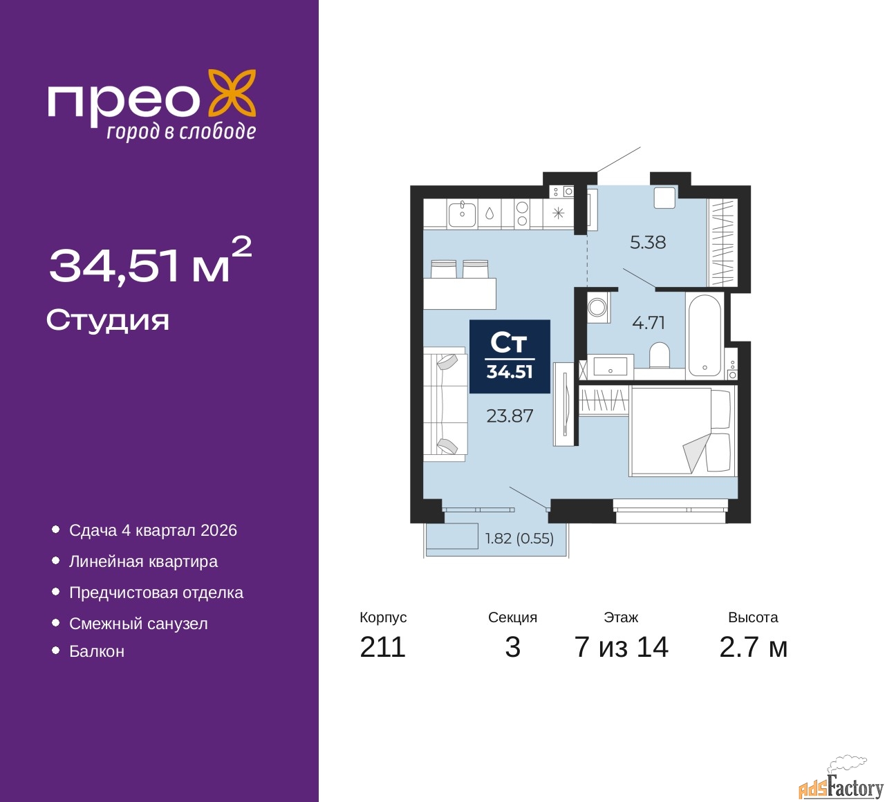 Дом монолитный, черырехподъездный, переменной этажности, от 14 до 21 этажей. Квартира находится в 3-й секции высотой 14 этажей в корпусе 211. На этаже 6 квартир. В подъезде 1 пассажирский и 1 грузовой лифт. Окончание строительства - 4 квартал 2026 года. Оформление сделки по договору долевого участия.
