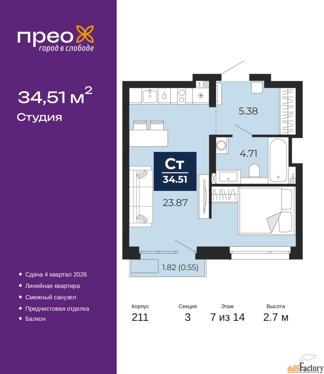 Дом монолитный, черырехподъездный, переменной этажности, от 14 до 21 этажей. Квартира находится в 3-й секции высотой 14 этажей в корпусе 211. На этаже 6 квартир. В подъезде 1 пассажирский и 1 грузовой лифт. Окончание строительства - 4 квартал 2026 года. Оформление сделки по договору долевого участия.