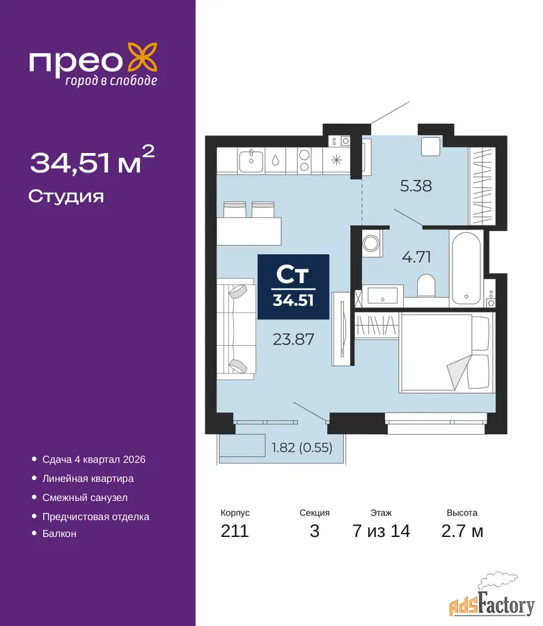 | Общая площадь (кв.м) | 34.51 |