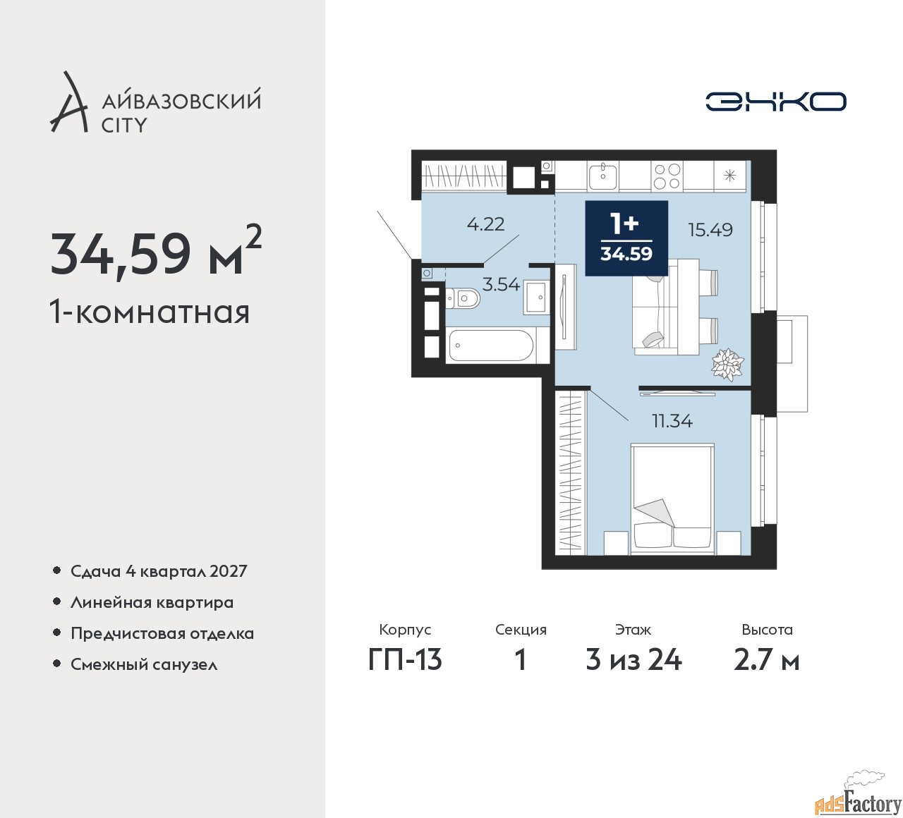 Дом монолитный, многоподъездный, высотой 24 этажа. Квартира находится в 1-й секции в корпусе ГП-13. На этаже 2 квартиры. Окончание строительства - 4 квартал 2027 года. Оформление сделки по договору долевого участия.