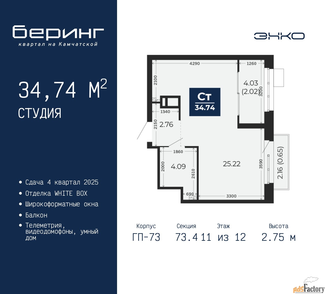 Дом монолитный, многоподъездный, переменной этажности, от 9 до 22 этажей. Квартира находится в 73.4-й секции высотой 12 этажей в корпусе ГП-73. На этаже 8 квартир. В подъезде 1 пассажирский и 1 грузовой лифт. Окончание строительства - 4 квартал 2025 года. Оформление сделки по договору долевого участия.