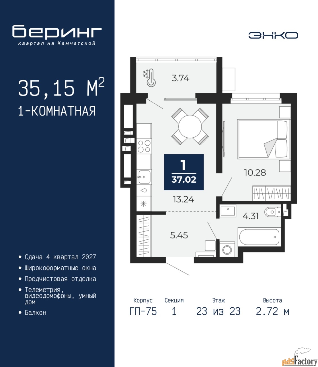 | Общая площадь (кв.м) | 35.15 |