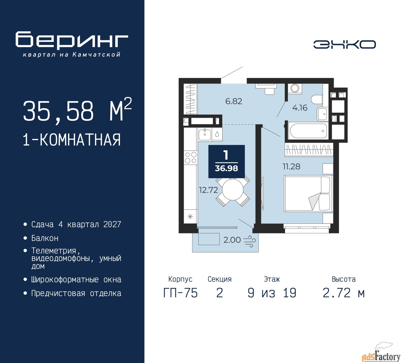 Дом монолитный, многоподъездный, переменной этажности, от 17 до 24 этажей. Квартира находится во 2-й секции высотой 19 этажей в корпусе ГП-75. На этаже 7 квартир. В подъезде 2 пассажирских и 1 грузовой лифт. Окончание строительства - 4 квартал 2027 года. Оформление сделки по договору долевого участия.