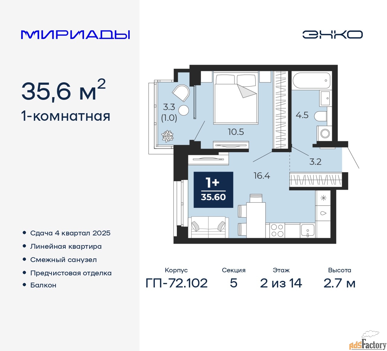 Дом монолитный, многоподъездный, переменной этажности, от 14 до 16 этажей. Квартира находится в 5-й секции высотой 14 этажей в корпусе ГП-72.102. На этаже 8 квартир. В подъезде 1 пассажирский и 1 грузовой лифт. Окончание строительства - 4 квартал 2025 года. Оформление сделки по договору долевого участия.