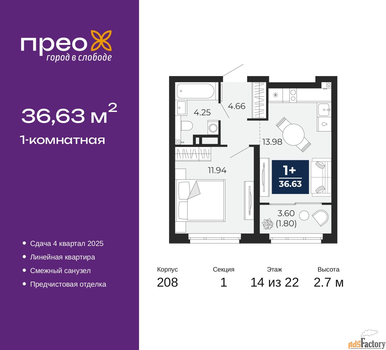 Дом монолитный, трехподъездный, переменной этажности, от 14 до 22 этажей. Квартира находится в 1-й секции высотой 22 этажа в корпусе 208. На этаже 8 квартир. В подъезде 1 пассажирский и 1 грузовой лифт. Окончание строительства - 4 квартал 2025 года. Оформление сделки по договору долевого участия.