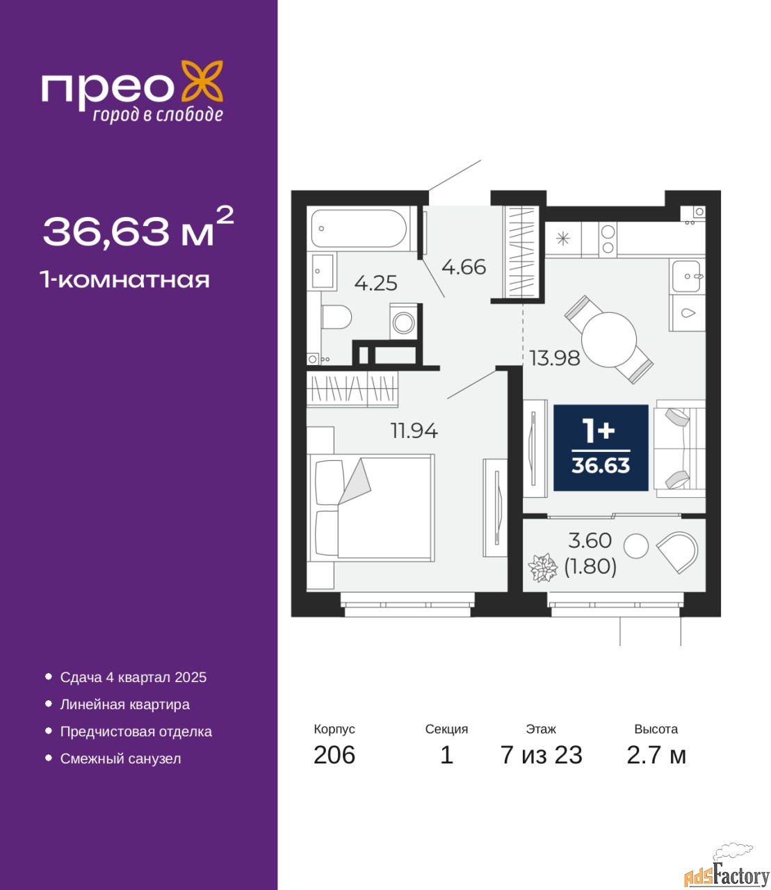 | Общая площадь (кв.м) | 36.63 |