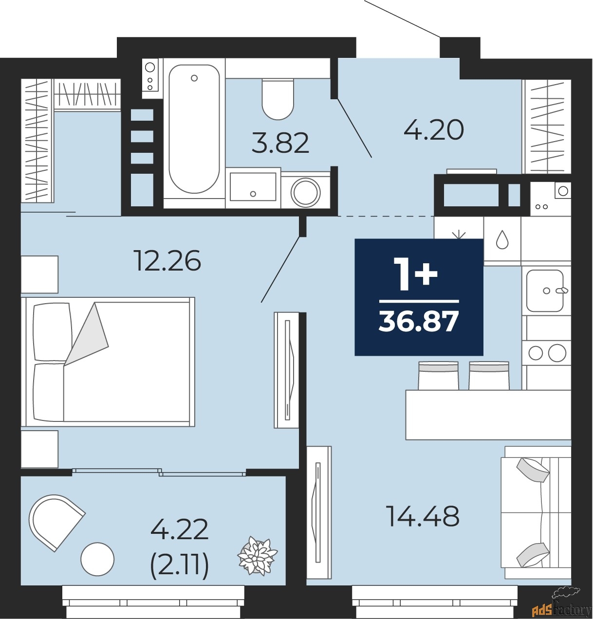 | Общая площадь (кв.м) | 36.87 |