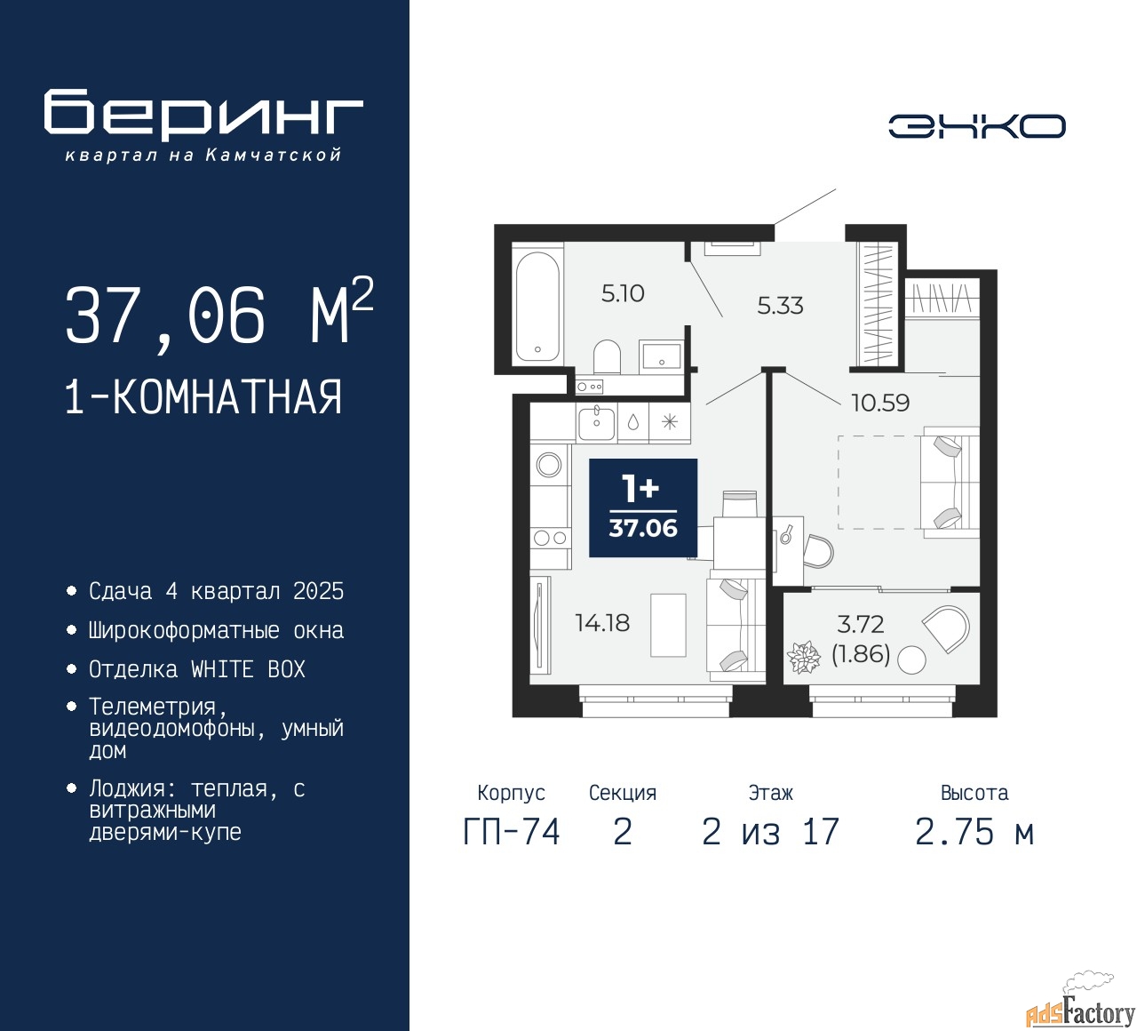 Высота потолков (м.) | 2.75 |