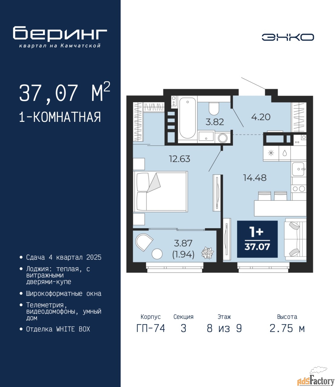 | Общая площадь (кв.м) | 37.07 |