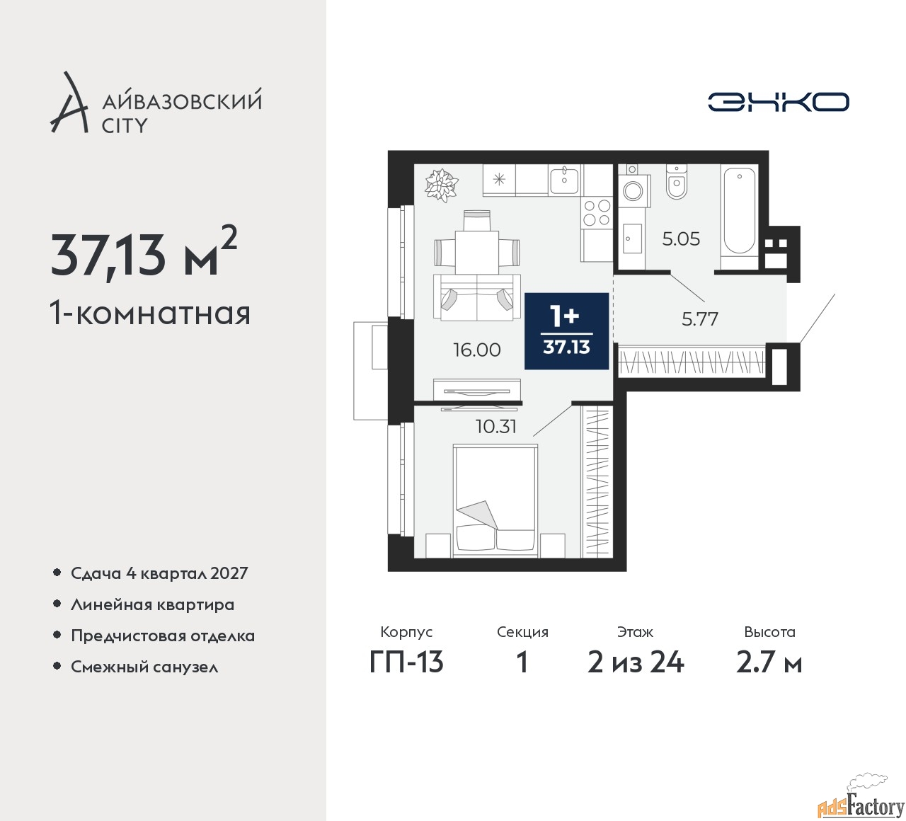 | Общая площадь (кв.м) | 37.13 |
