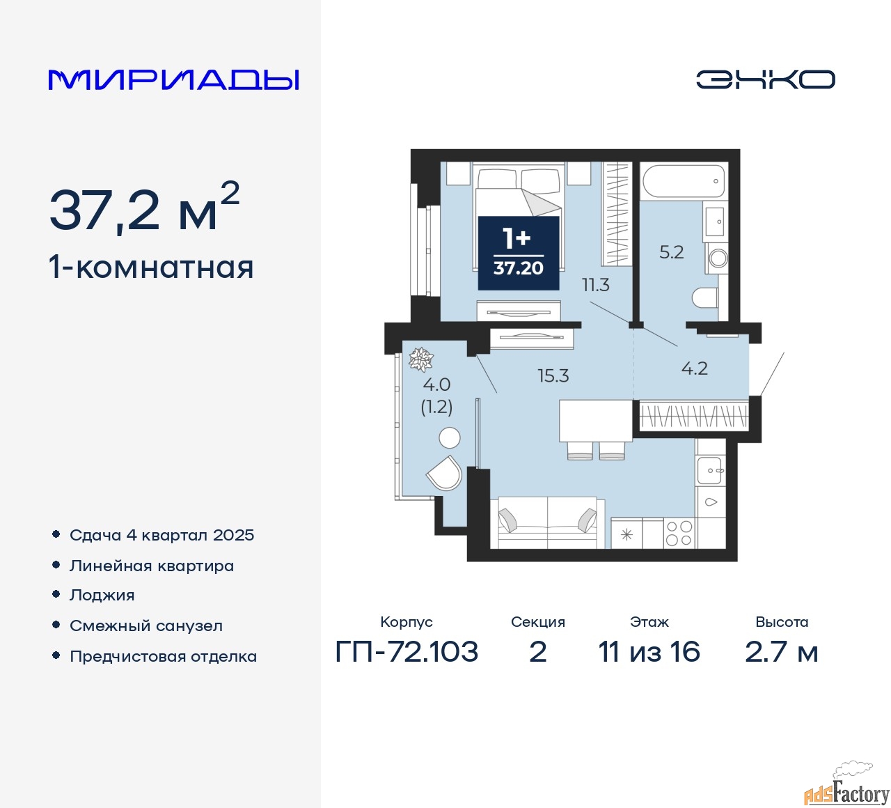 | Общая площадь (кв.м) | 37.2 |