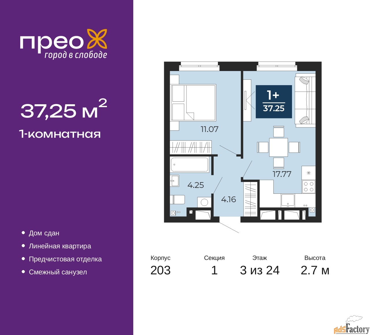 Квартира находится в корпусе 203. Дом монолитный, одноподъездный, высотой 24 этажа. На этаже 14 квартир. В подъезде 2 грузовых лифта. Строительство окончено, дом сдан в 4 квартале 2024 года. Оформление сделки по договору купли-продажи.