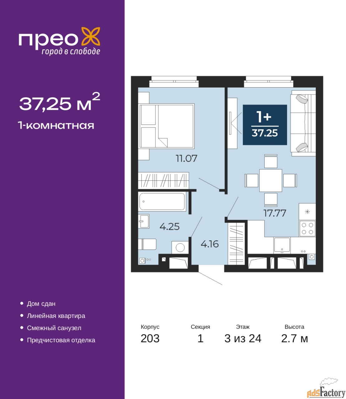 Квартира находится в корпусе 203. Дом монолитный, одноподъездный, высотой 24 этажа. На этаже 14 квартир. В подъезде 2 грузовых лифта. На сегодняшний день строительство окончено, дом сдан в 4 квартале 2024 года. Оформление сделки по договору купли-продажи.
