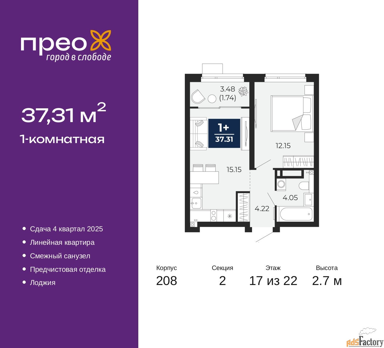 | Общая площадь (кв.м) | 37.31 |
