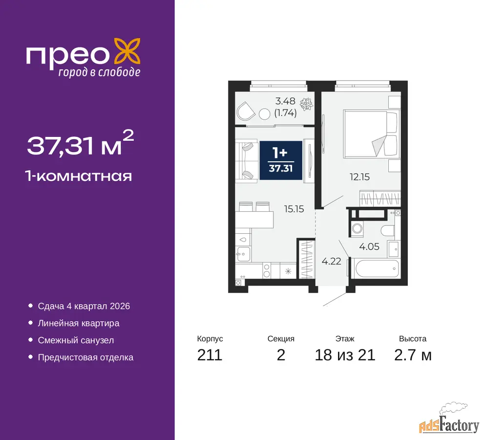 | Общая площадь (кв.м) | 37.31 |