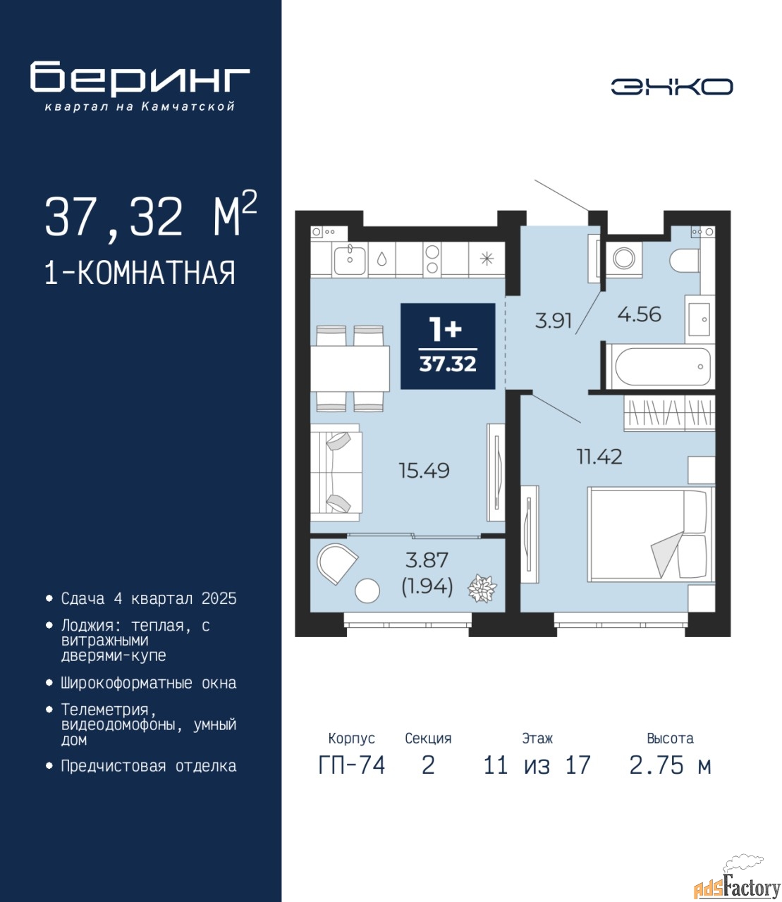 | Общая площадь (кв.м) | 37.32 |