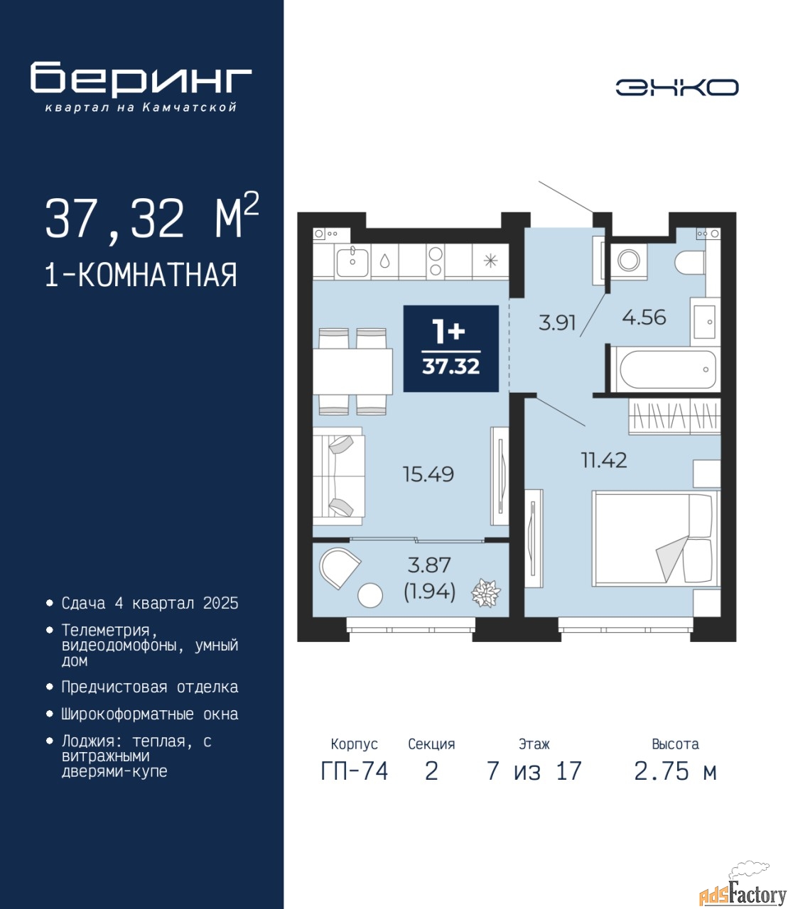 | Общая площадь (кв.м) | 37.32 |