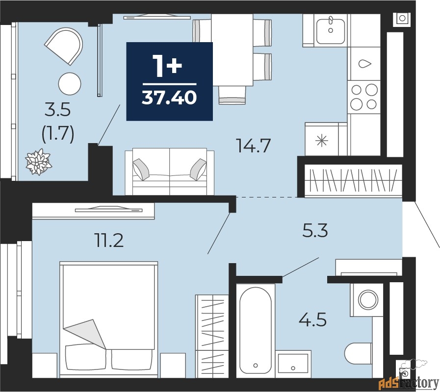| Общая площадь (кв.м) | 37.4 |