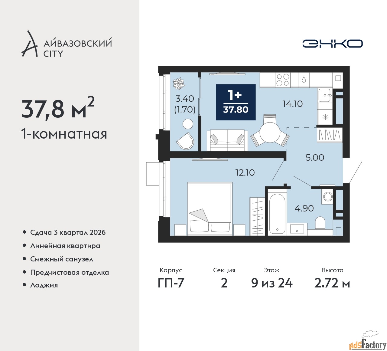 Дом монолитный, многоподъездный, переменной этажности, от 9 до 24 этажей. Квартира находится во 2-й секции высотой 24 этажа в корпусе ГП-7. На этаже 7 квартир. В подъезде 1 пассажирский и 2 грузовых лифта. Окончание строительства - 3 квартал 2026 года. Оформление сделки по договору долевого участия.