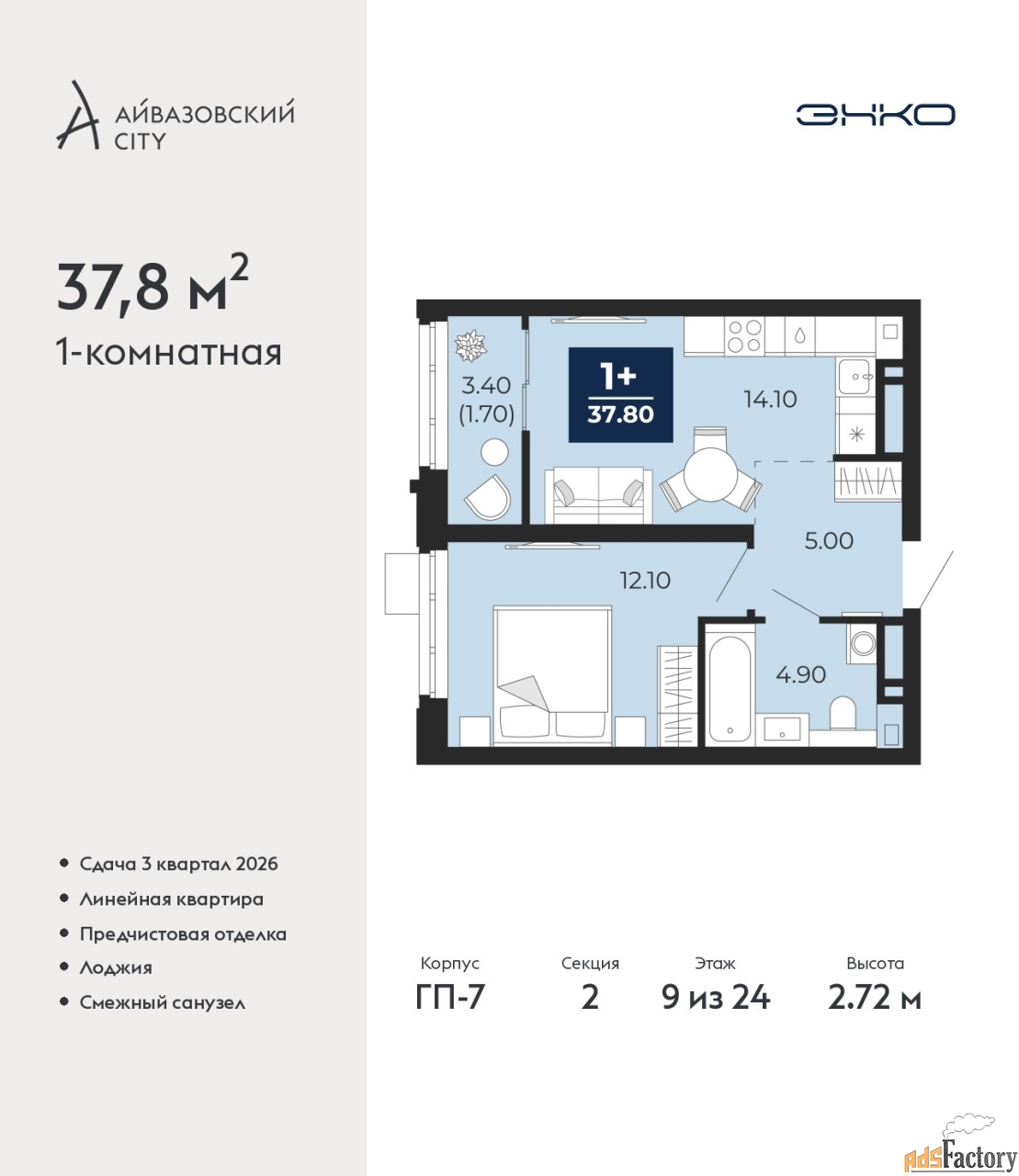 Дом монолитный, многоподъездный, переменной этажности, от 9 до 24 этажей. Квартира находится во 2-й секции высотой 24 этажа в корпусе ГП-7. На этаже 7 квартир. В подъезде 1 пассажирский и 2 грузовых лифта. Окончание строительства - 3 квартал 2026 года. Оформление сделки по договору долевого участия.