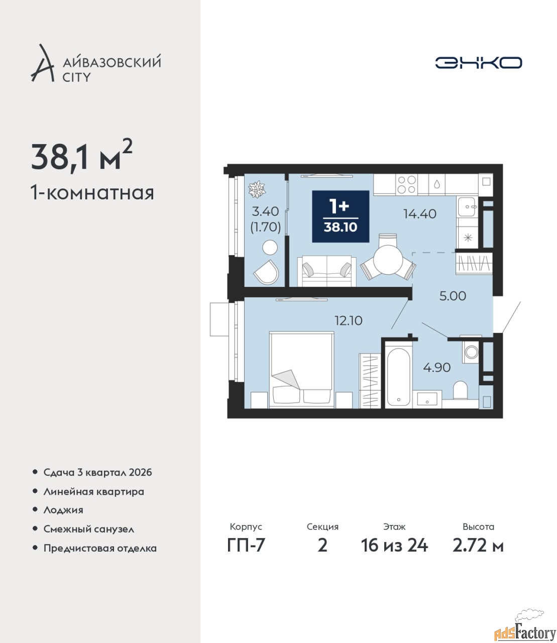 Дом монолитный, многоподъездный, переменной этажности, от 9 до 24 этажей. Квартира находится во 2-й секции высотой 24 этажа в корпусе ГП-7. На этаже 7 квартир. В подъезде 1 пассажирский и 2 грузовых лифта. Окончание строительства - 3 квартал 2026 года. Оформление сделки по договору долевого участия.