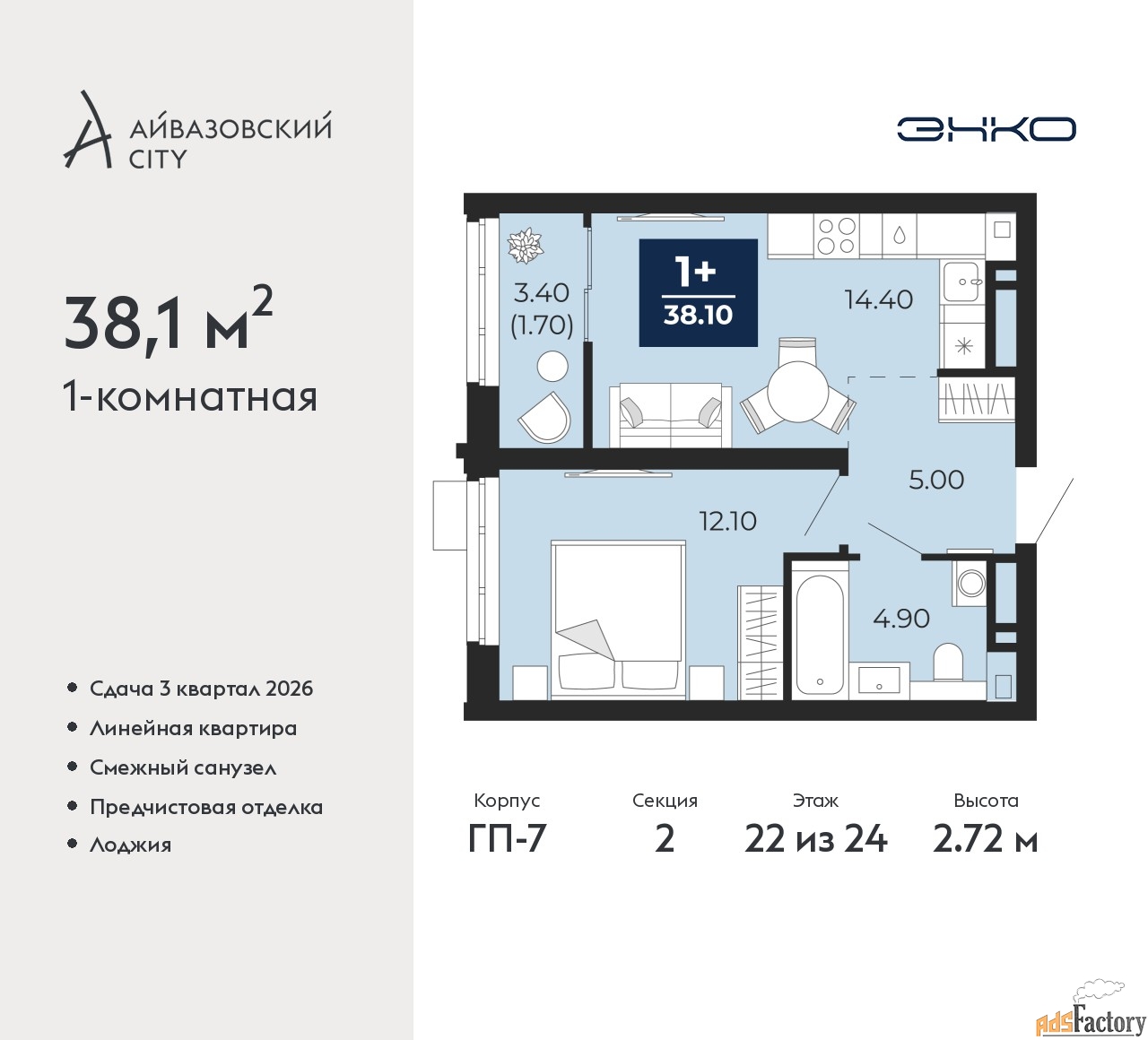 Дом монолитный, многоподъездный, переменной этажности, от 9 до 24 этажей. Квартира находится во 2-й секции высотой 24 этажа в корпусе ГП-7. На этаже 7 квартир. В подъезде 1 пассажирский и 2 грузовых лифта. Окончание строительства - 3 квартал 2026 года. Оформление сделки по договору долевого участия.