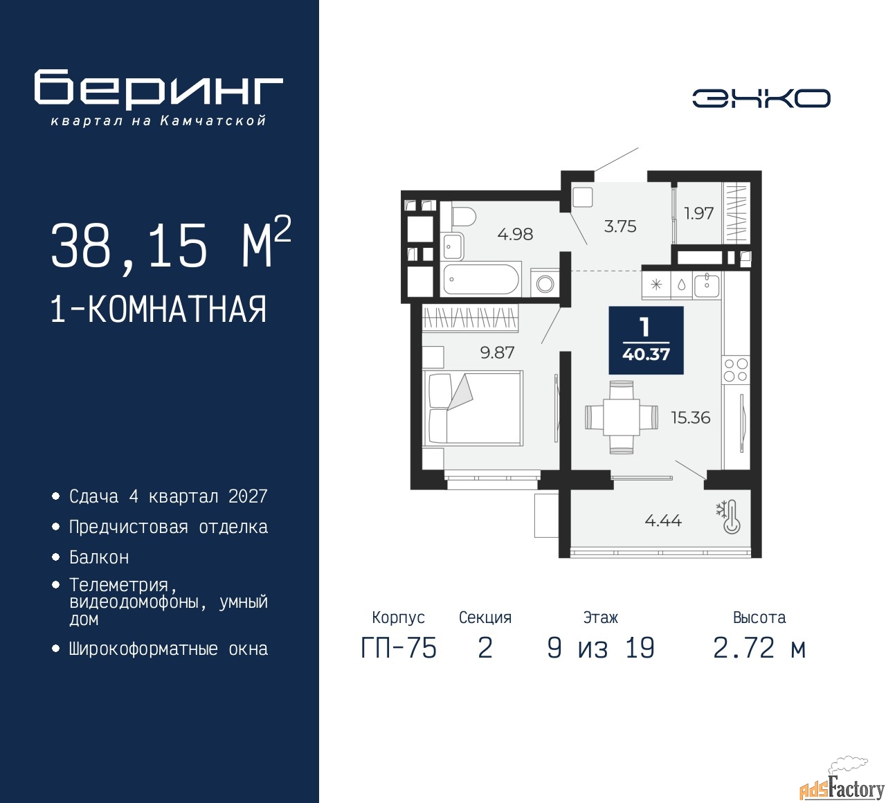 | Общая площадь (кв.м) | 38.15 |