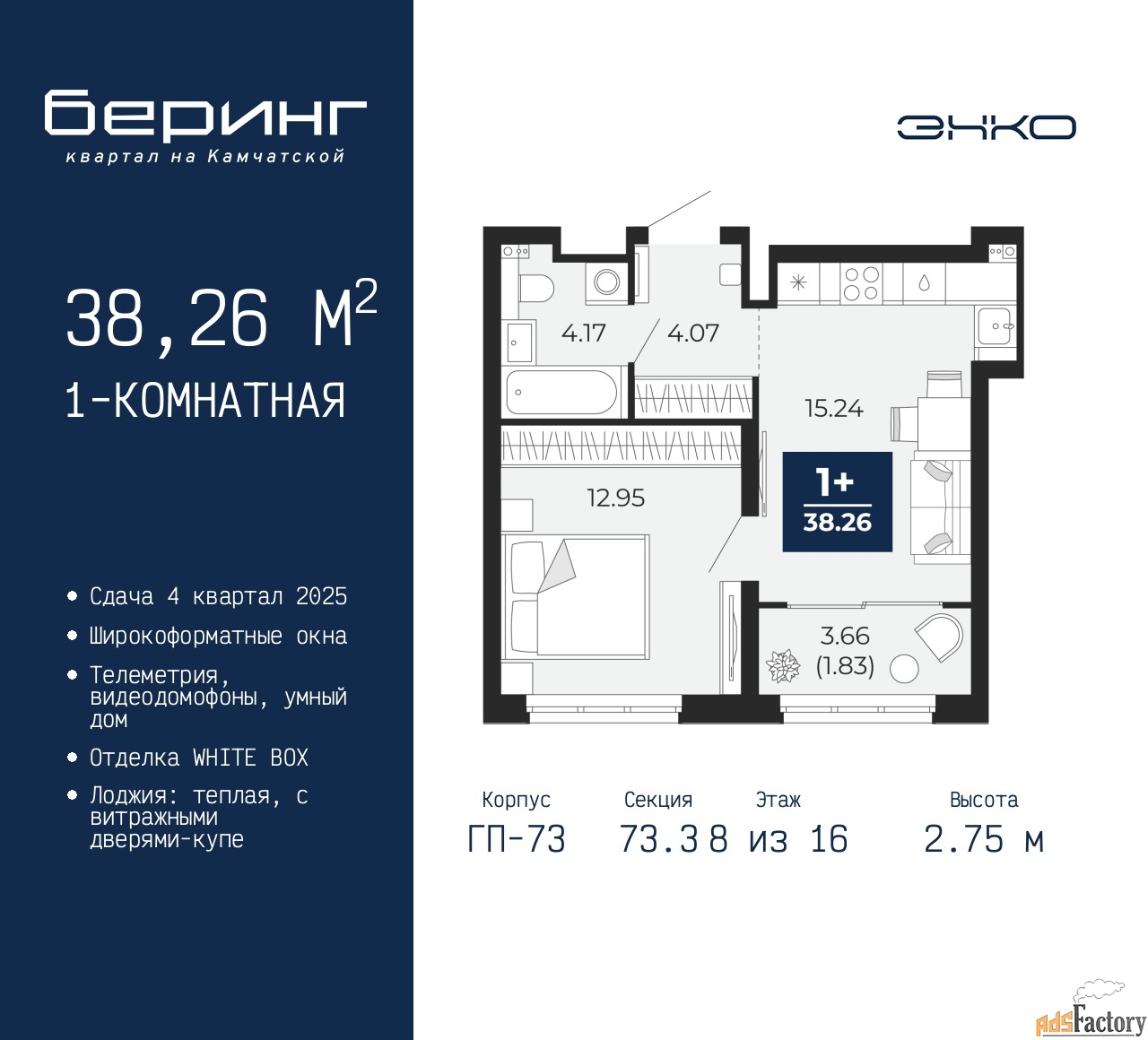Дом монолитный, многоподъездный, переменной этажности, от 9 до 22 этажей. Квартира находится в 73.3-й секции высотой 16 этажей в корпусе ГП-73. На этаже 8 квартир. В подъезде 1 пассажирский и 1 грузовой лифт. Окончание строительства - 4 квартал 2025 года. Оформление сделки по договору долевого участия.