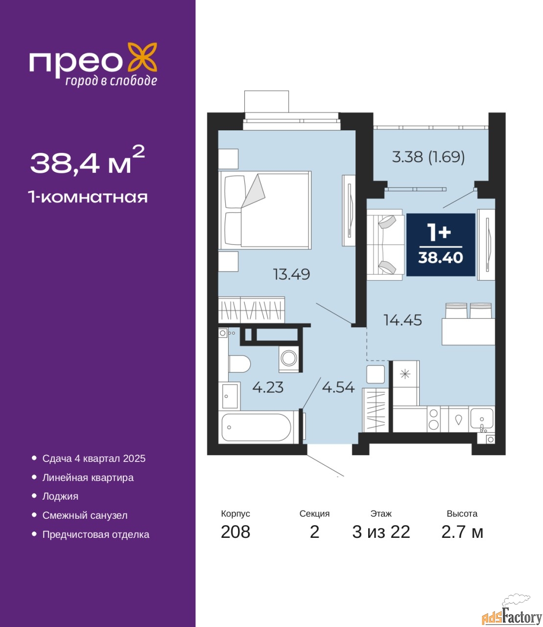| Общая площадь (кв.м) | 38.4 |