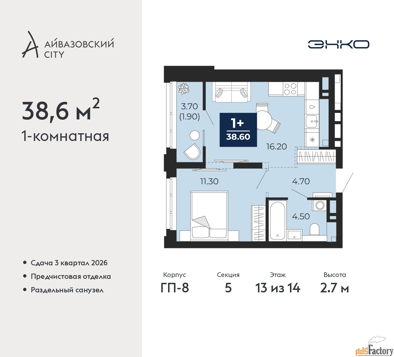 Высота потолков (м.) | 2.7 |
