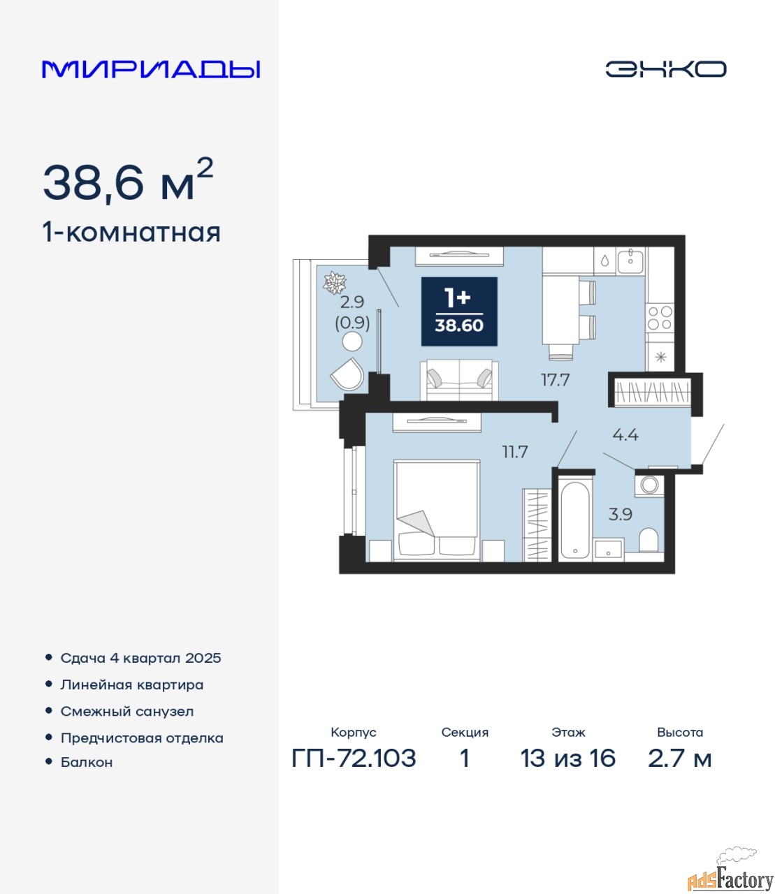 | Высота потолков (м.) | 2.7 |