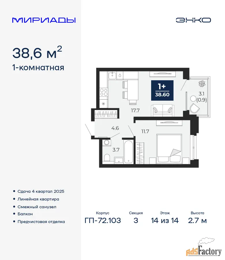 | Высота потолков (м.) | 2.7 |