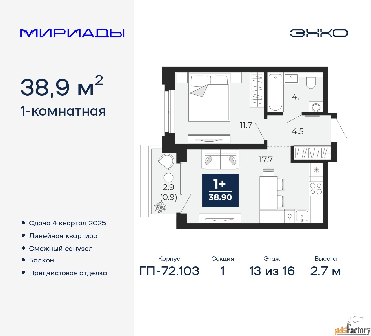 | Общая площадь (кв.м) | 38.9 |