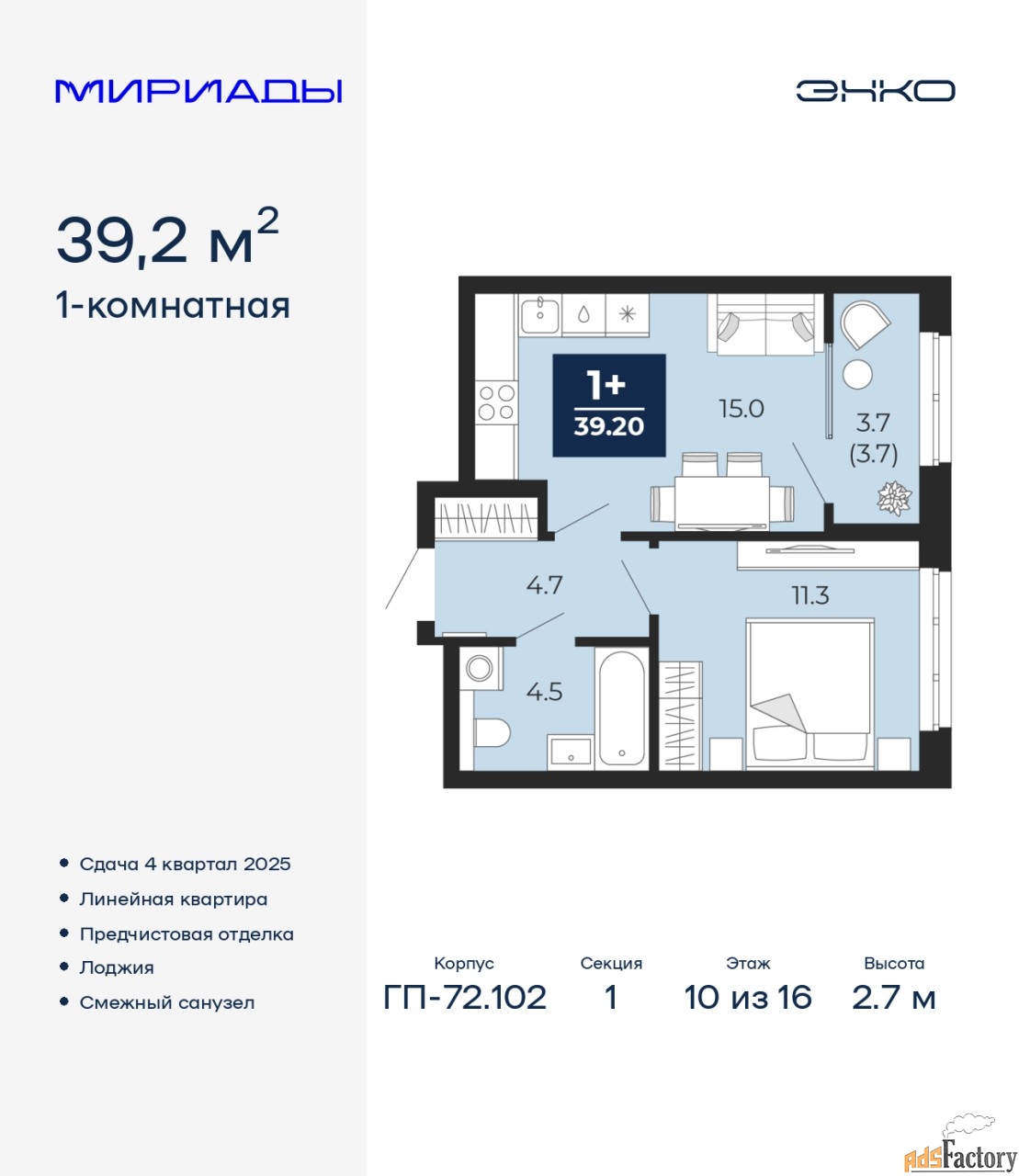 | Общая площадь (кв.м) | 39.2 |