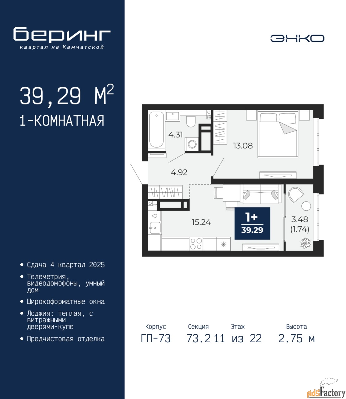 | Общая площадь (кв.м) | 39.29 |
