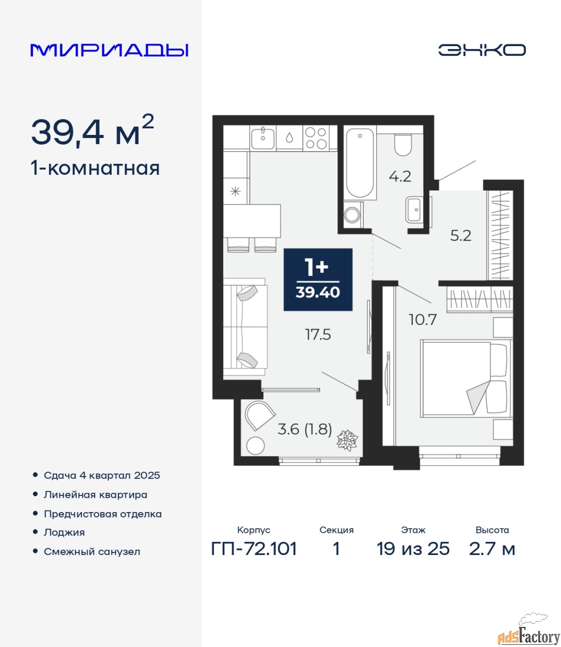 Квартира находится в корпусе ГП-72.101. Дом монолитный, одноподъездный, высотой 25 этажей. На этаже 8 квартир. В подъезде 2 пассажирских и 1 грузовой лифт. Окончание строительства - 1 квартал 2026 года. Оформление сделки по договору долевого участия.
