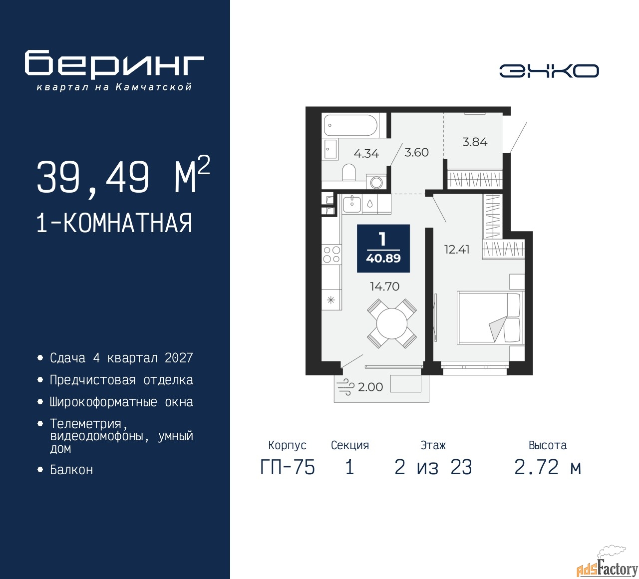 | Общая площадь (кв.м) | 39.49 |