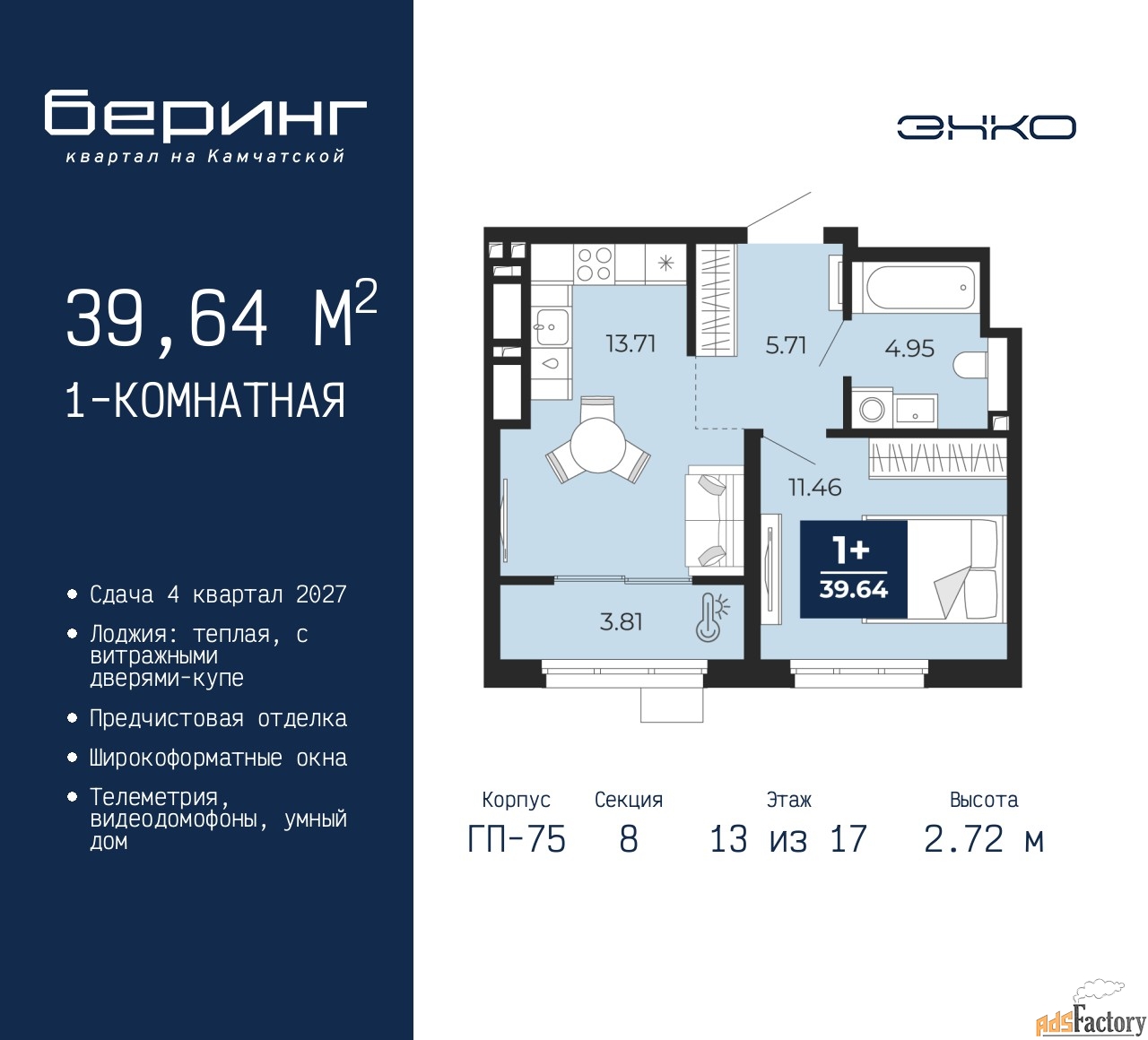 | Площадь кухни (кв.м) | 13.71 |