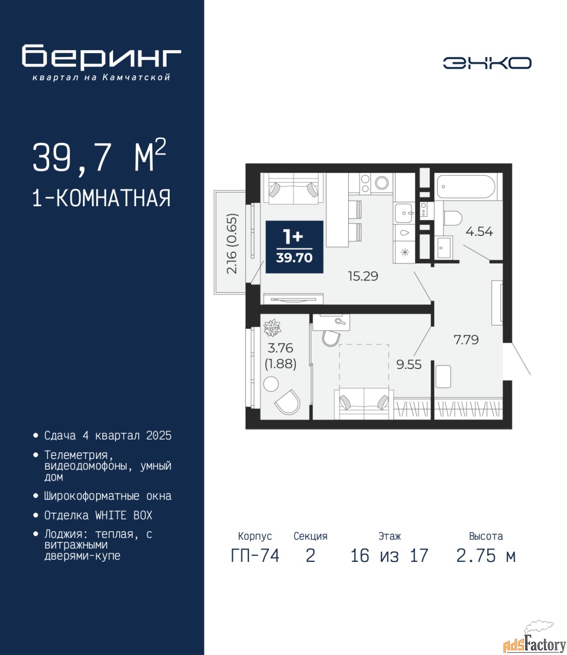 Дом монолитный, многоподъездный, переменной этажности, от 9 до 21 этажей. Квартира находится во 2-й секции высотой 17 этажей в корпусе ГП-74. На этаже 7 квартир. В подъезде 1 пассажирский и 1 грузовой лифт. Окончание строительства - 4 квартал 2025 года. Оформление сделки по договору долевого участия.