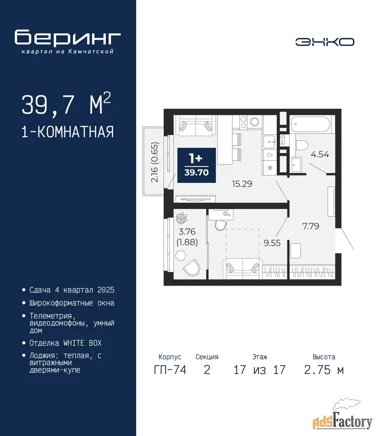 | Высота потолков (м.) | 2.75 |