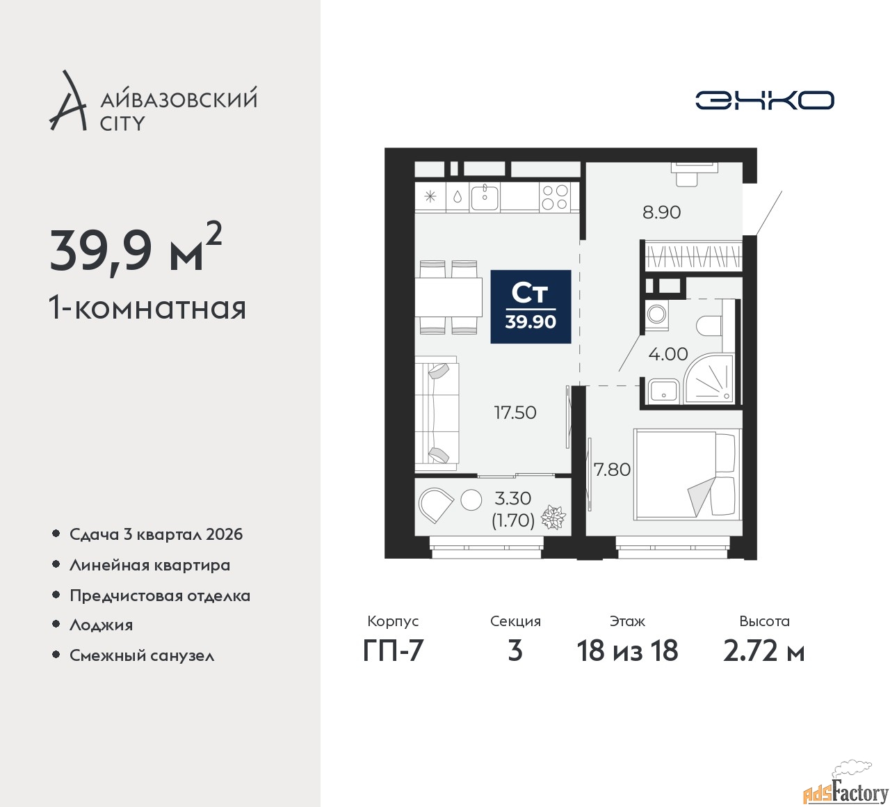 Дом монолитный, многоподъездный, переменной этажности, от 9 до 24 этажей. Квартира находится в 3-й секции высотой 18 этажей в корпусе ГП-7. На этаже 5 квартир. В подъезде 1 пассажирский и 2 грузовых лифта. Окончание строительства - 3 квартал 2026 года. Оформление сделки по договору долевого участия.