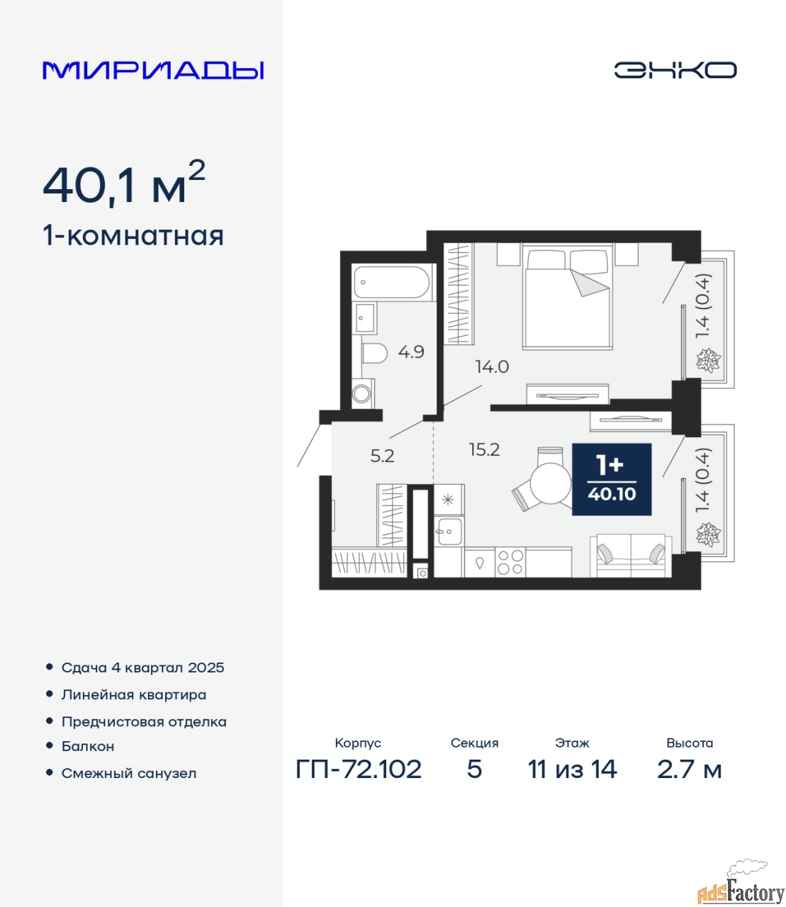 | Общая площадь (кв.м) | 40.1 |