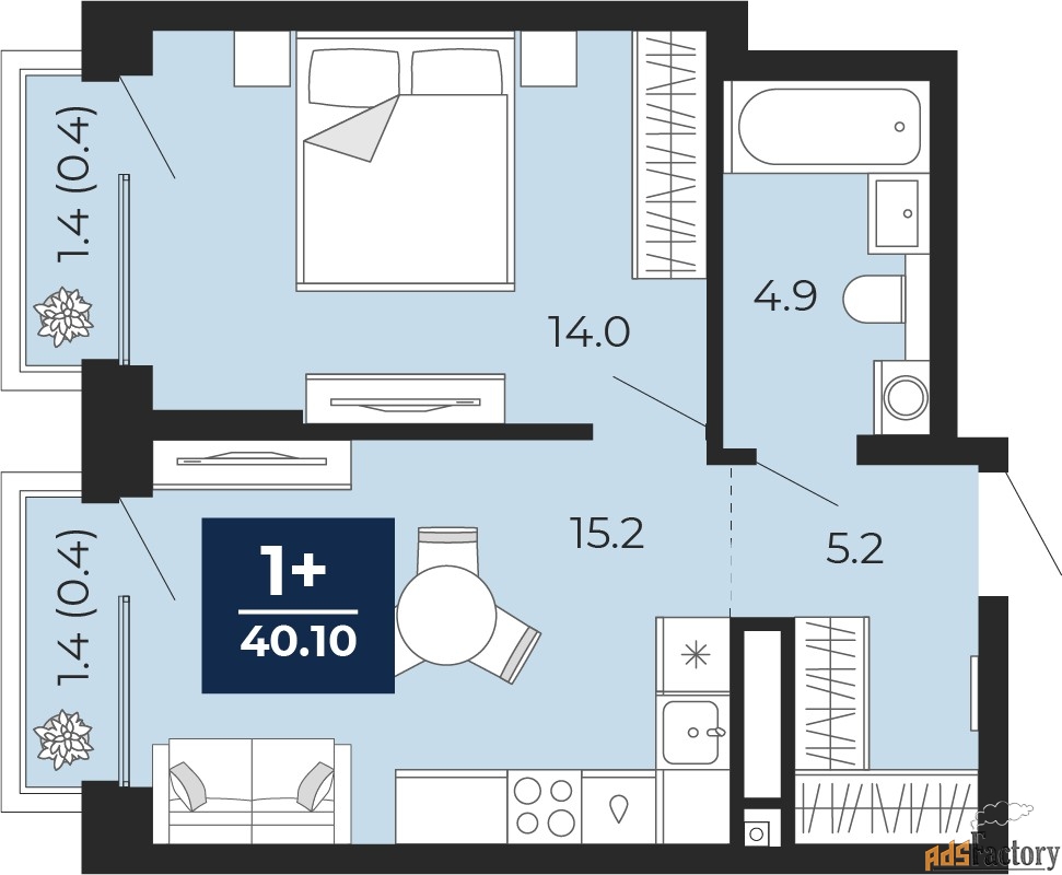 | Общая площадь (кв.м) | 40.1 |