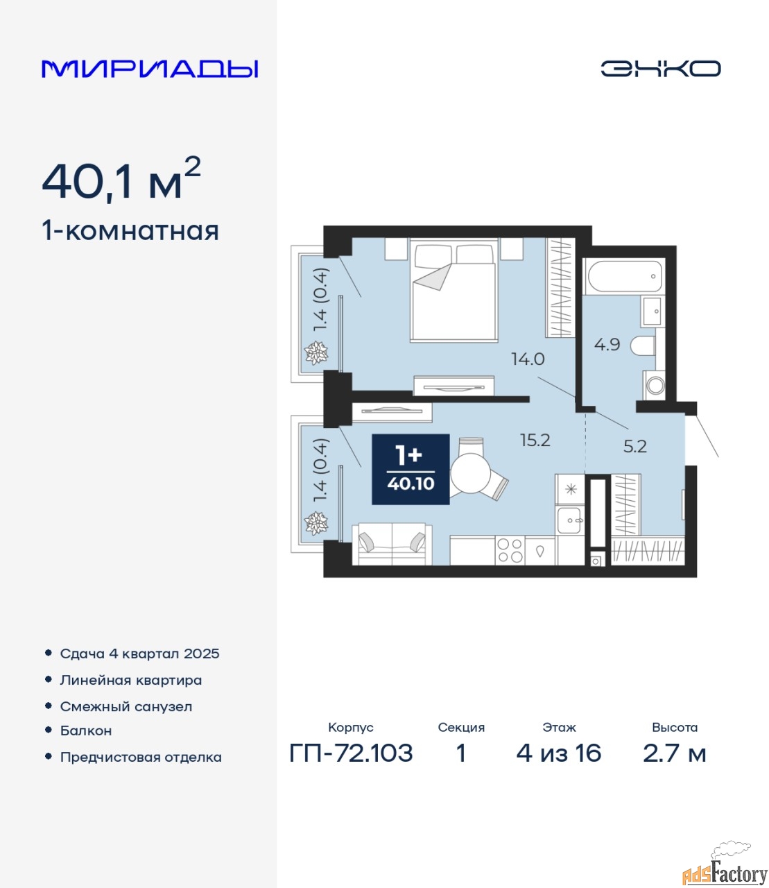 | Общая площадь (кв.м) | 40.1 |