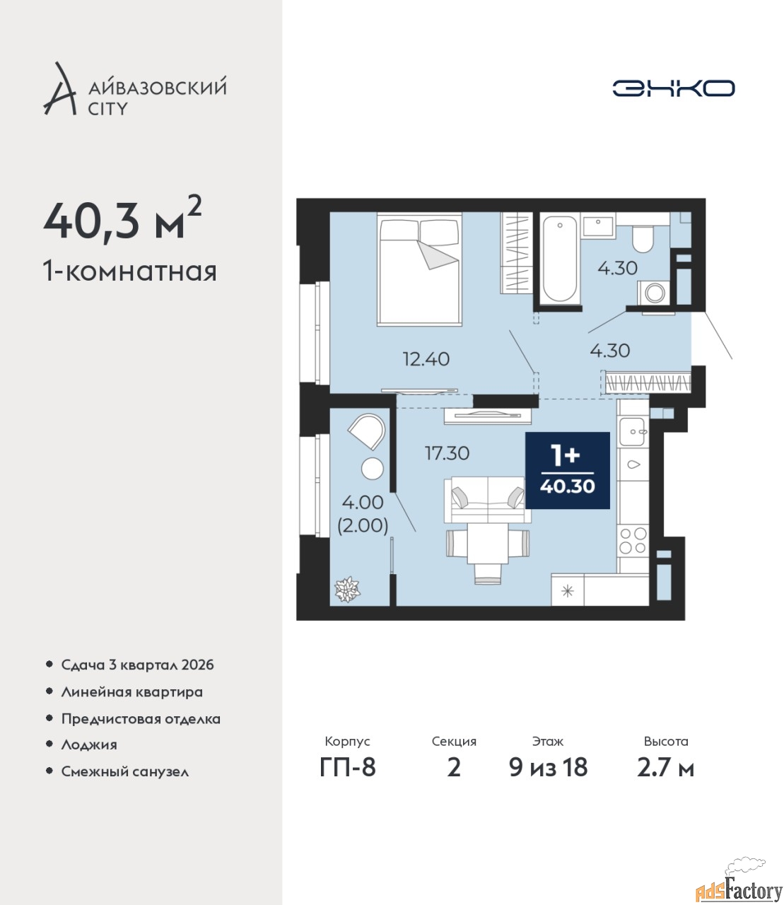 Дом монолитный, многоподъездный, переменной этажности, от 14 до 24 этажей. Квартира находится во 2-й секции высотой 18 этажей в корпусе ГП-8. На этаже 5 квартир. В подъезде 1 пассажирский и 1 грузовой лифт. Окончание строительства - 3 квартал 2026 года. Оформление сделки по договору долевого участия.