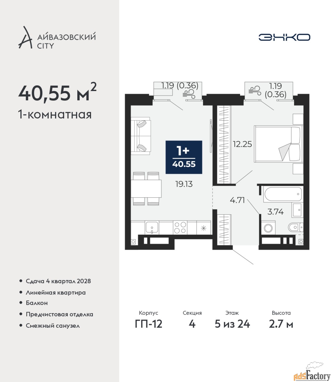 Дом монолитный, многоподъездный, высотой 24 этажа. Квартира находится в 4-й секции в корпусе ГП-12. На этаже 5 квартир. В подъезде 1 пассажирский и 1 грузовой лифт. Окончание строительства - 4 квартал 2028 года. Оформление сделки по договору долевого участия.