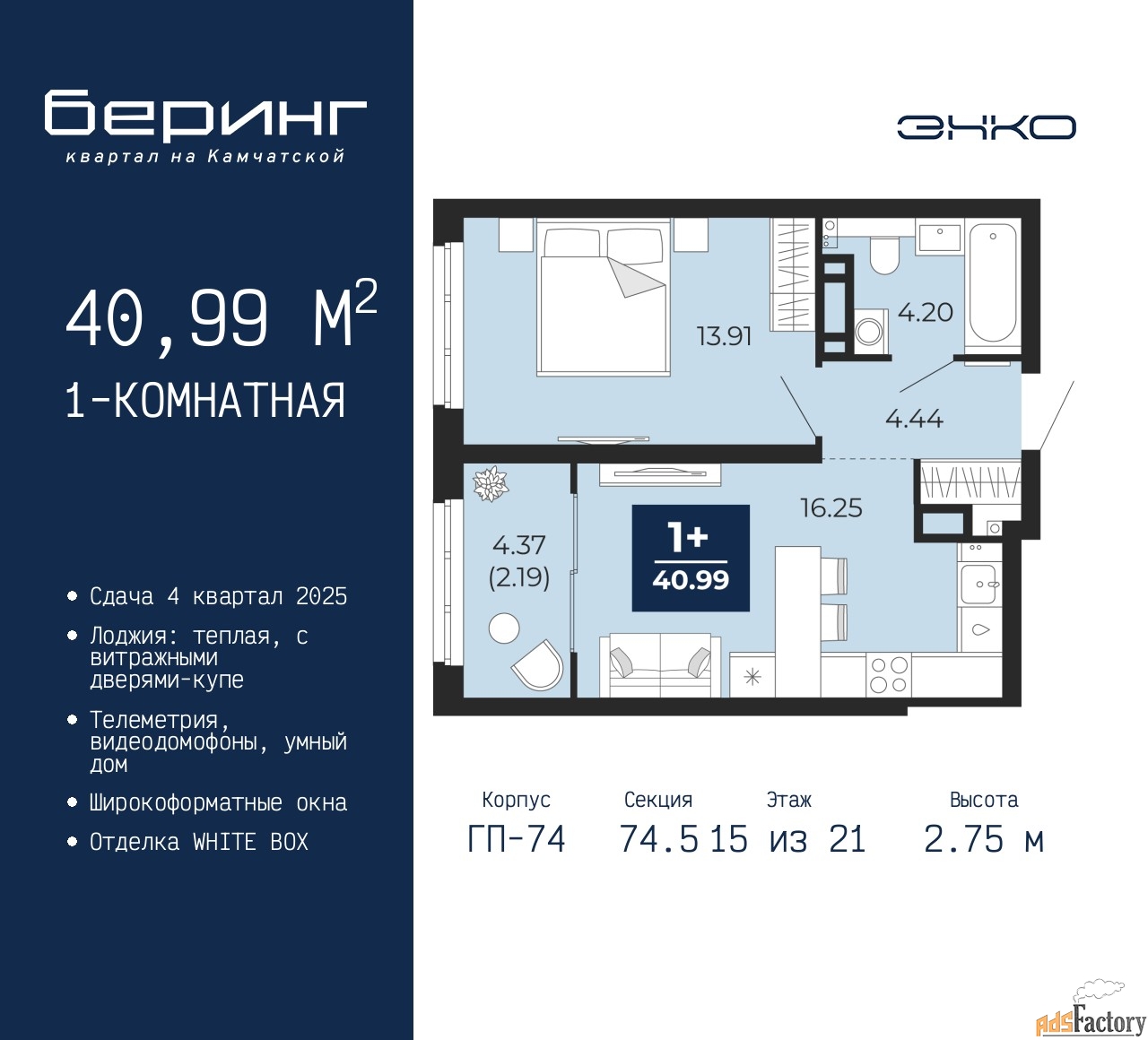 Дом монолитный, многоподъездный, переменной этажности, от 9 до 21 этажей. Квартира находится в 74.5-й секции высотой 21 этаж в корпусе ГП-74. На этаже 7 квартир. В подъезде 1 пассажирский и 1 грузовой лифт. Окончание строительства - 4 квартал 2025 года. Оформление сделки по договору долевого участия.