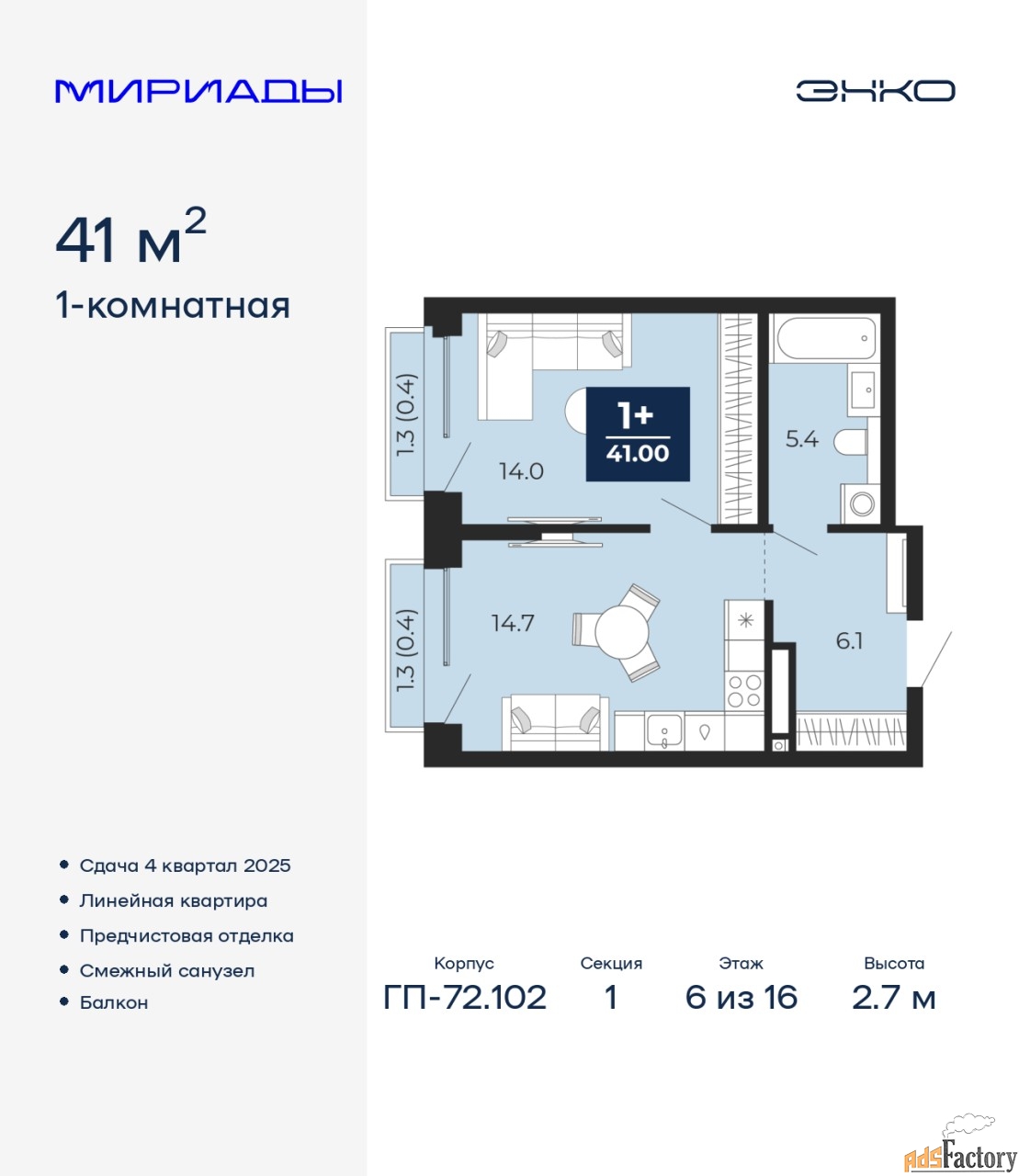 | Общая площадь (кв.м) | 41 |