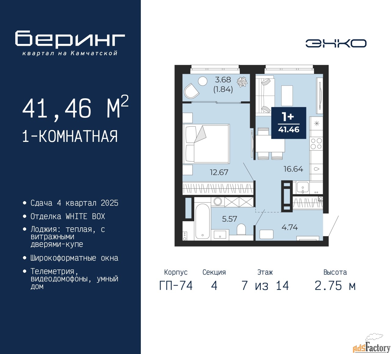 | Высота потолков (м.) | 2.75 |