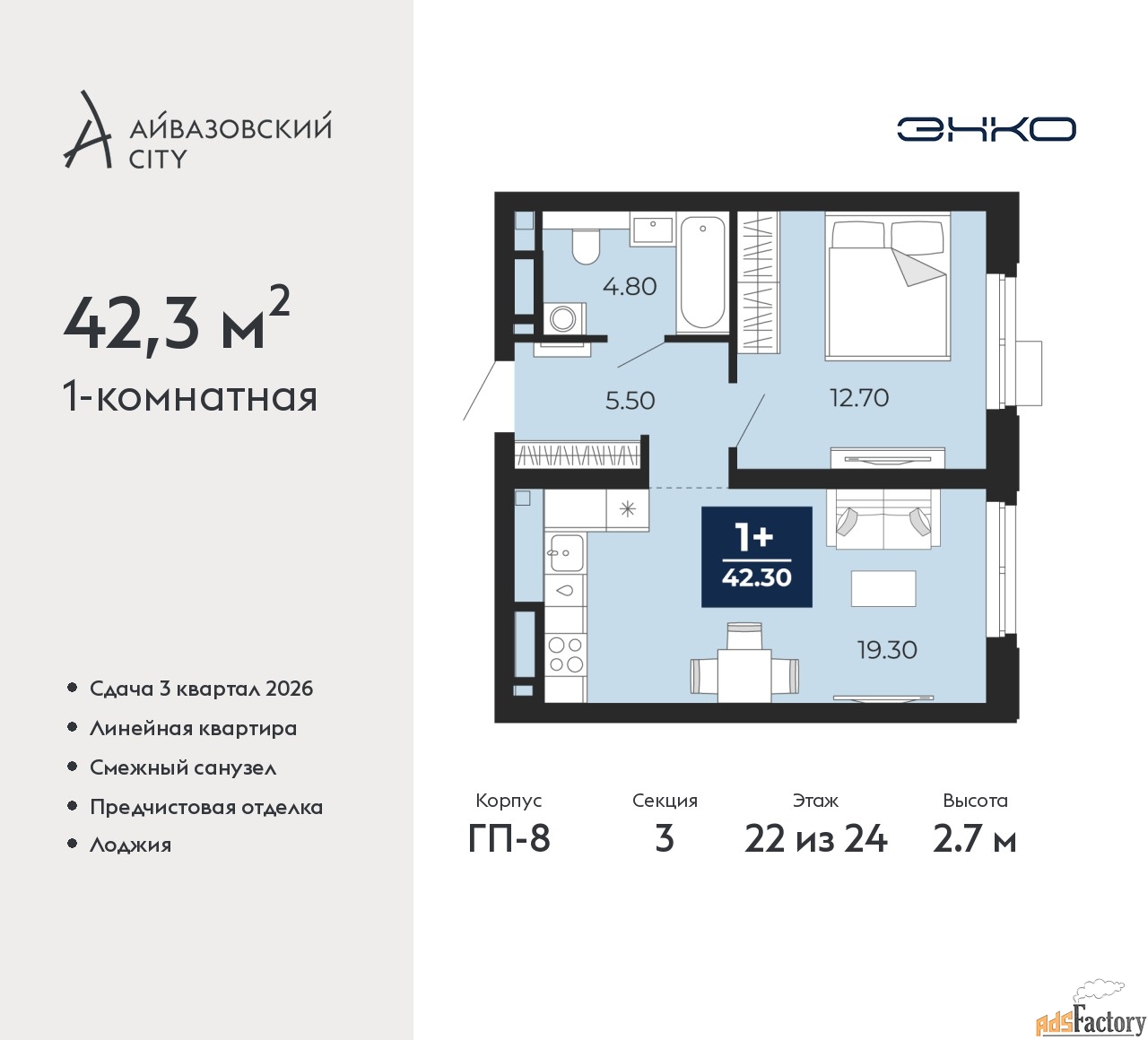 | Общая площадь (кв.м) | 42.3 |